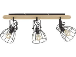 Fischer & Honsel 3flammiger Vintage Deckenstrahler DIE, Gitterlampe Schwarz Mit Holz Natur