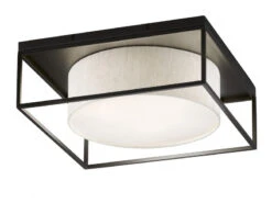 Fischer & Honsel Deckenleuchte CARRE Eckig 50x50cm Groß Mit Leinen Stoffschirm Beige
