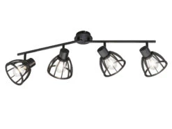 Fischer & Honsel Deckenstrahler RAN Grau / Holz 4flammig, Gitterlampe Schwenkbar, 60cm Lang