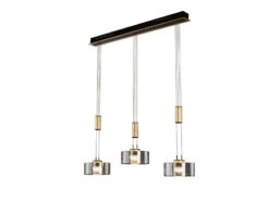 Fischer & Honsel LED Pendelleuchte LAVIN 3flammig Rauchglas Gold Höhenverstellbar Dimmbar, 100cm
