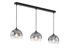 Fischer & Honsel Pendelleuchte AMOS 3 Flammig 100cm Lang – Rauchglas Kugeln Ø 20cm
