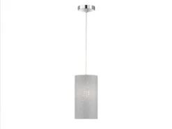 Fischer & Honsel Pendelleuchte THOR 1 Flammig Mit Dekor Stoffschirm Zylinder Grau Ø 16cm