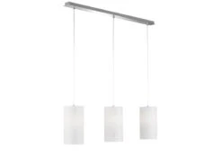 Fischer & Honsel Pendelleuchte THOR 3 Flammig Mit Dekor Stoffschirmen Zylinder Weiß, 110cm Lang