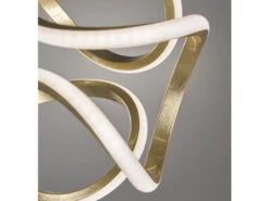 Mit ihren kunstvoll geschwungenen Brennstellen und dem geradlinigen Metallkorpus bringt sie ein besonderes Flair in Ihr Zuhause und sorgt ganz nebenbei für wohnliche Lichtmomente. Unterstrichen wird das Gesamt Erscheinungsbild der 108 cm langen und 26 cm breiten Hängelampe durch die perfekt aufeinander abgestimmte Farbkombination von elegantem Schwarz und luxuriösem Blattgold / Weiß.
