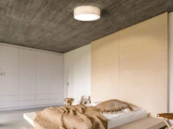 Der sandfarbene Leinenschirm hat einen Durchmesser von 40cm und eine Höhe von 12cm. Das edle Erscheinungsbild der Deckenleuchte sorgt im Zusammenspiel mit der unteren, satinierten Acrylabdeckung für ein harmonisches Ambiente. Bei Verwendung von entsprechend warmweißen Leuchtmitteln lässt sich dieser Effekt noch unterstreichen, indem die Deckenleuchte ein besonders wohnliches Licht zaubert.