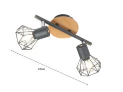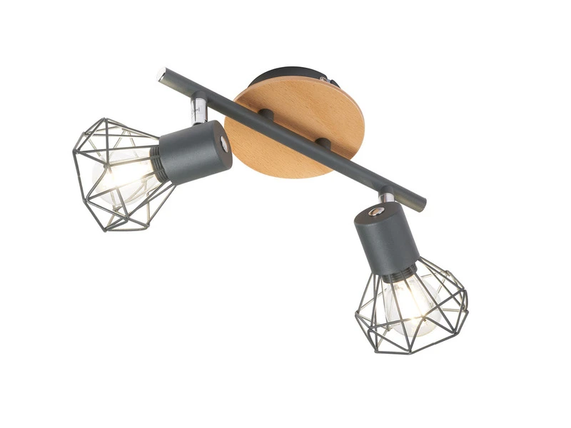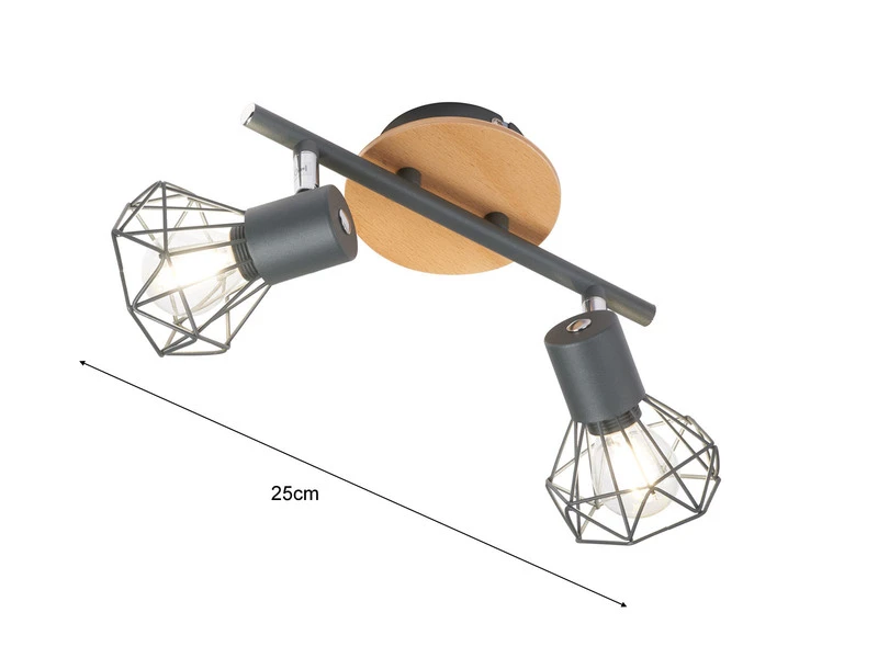 Das besondere Erscheinungsbild des 25cm langen und 11cm breiten Deckenstrahlers entsteht nicht zuletzt durch die beiden Gitter Lampenschirme, die den Blick freigeben auf die innenliegenden Leuchtmittel. Besonders im eingeschalteten Zustand entfaltet der schwenkbare Strahler seine gesamte Schönheit, indem die Gitterform der Lampenschirme fĂŒr interessante Lichtspiele sorgt.