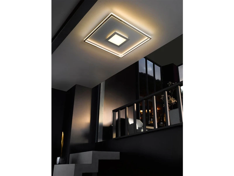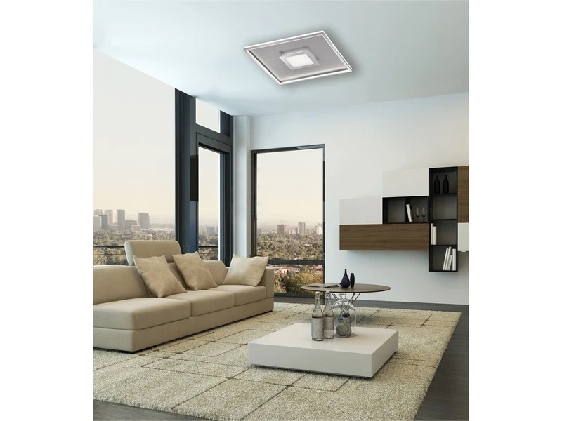 Die Deckenlampe ist mit einem fest verbauten LED Modul ausgestattet, welches mit einer Leistung von 28 Watt und 3300 Lumen in Warmweiß eine effektive Beleuchtung garantiert.