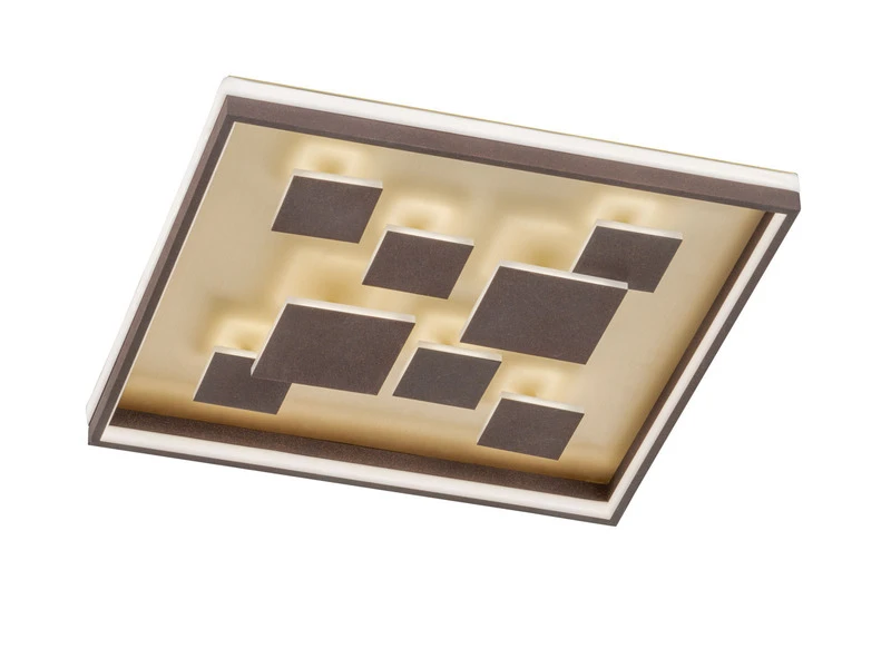 Ihre gesamte Schönheit zeigt die Deckenleuchte vor allem im eingeschalteten Zustand: Durch die aufgesetzten Quadrate, hinter denen sich die Lichtquellen „verstecken“, entsteht eine angenehme indirekte, aber dennoch helle Beleuchtung.