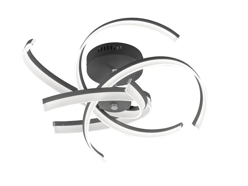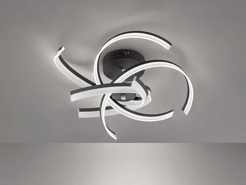 Mit einem Durchmesser von 65 cm ist die Deckenleuchte bereits im Hellen ein auffälliger Hingucker und kann dank ihrer Farbgestaltung in mattem Schwarz mit vielen Einrichtungsstilen kombiniert werden.