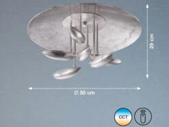 Mit ihrer leicht gewölbten, nickel matten und nickel antiken OberflĂ€che sowie einem Durchmesser von 50 cm sorgt sie fĂŒr ein angenehmes Flair in Ihrem Zuhause, indem sie ein sanftes indirektes Deckenlicht kreiert.