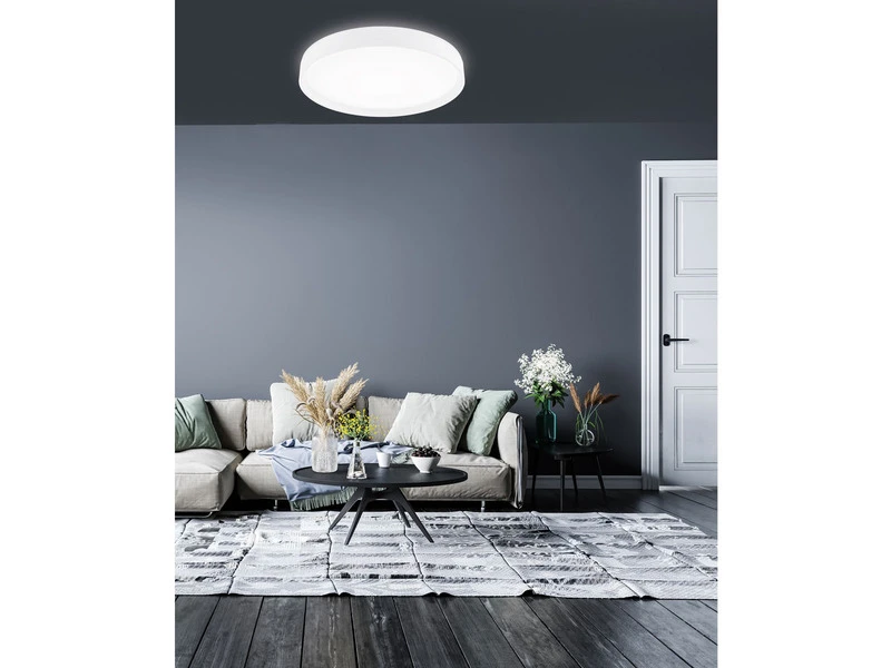 Ausgestattet mit einem fest verbauten 32 Watt LED Modul mit hoher Lebensdauer erstrahlt die Deckenleuchte mit 3900 Lumen in warmweißem Licht und sorgt damit für eine effektive Beleuchtung in jedem Wohnraum.