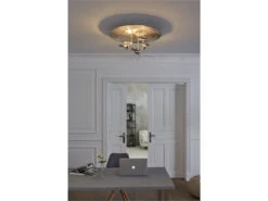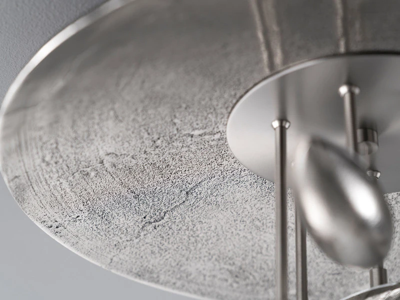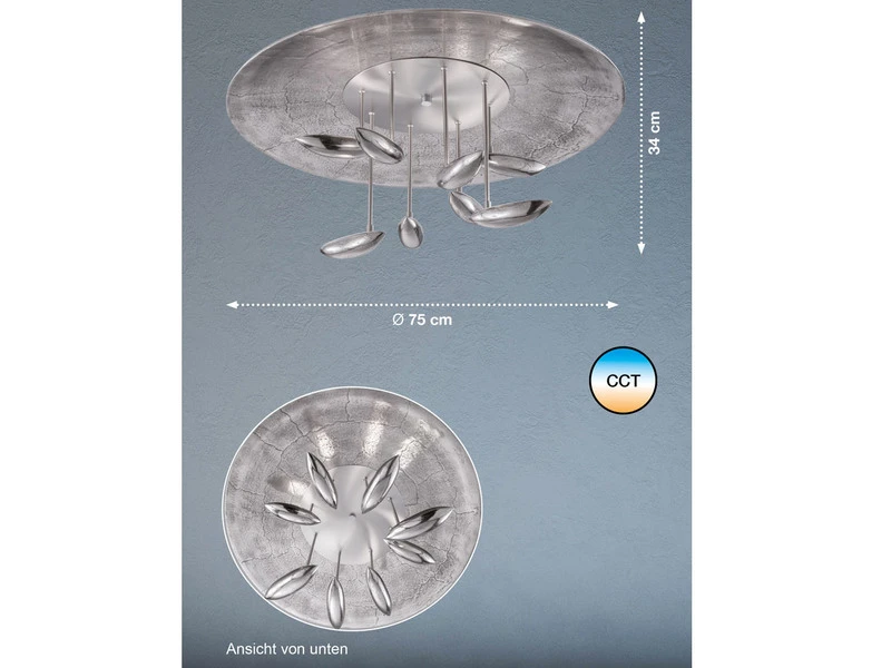 Mit ihrer leicht gewölbten, nickel matten und nickel antiken OberflĂ€che sowie einem Durchmesser von 75 cm sorgt sie fĂŒr ein angenehmes Flair in Ihrem Zuhause, indem sie ein sanftes indirektes Deckenlicht kreiert.