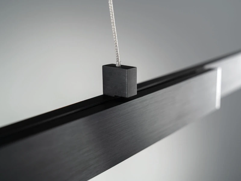 Das Design dieser auĂergewöhnlichen HĂ€ngeleuchte besticht durch seine schmale Silhouette von nur 6cm, die subtile Eleganz ausstrahlt und perfekt mit zeitgenössischen Einrichtungsstilen harmoniert. Die OberflĂ€che in mattem Metall Anthrazit verleiht der Leuchte einen Hauch von zeitloser Klasse, wĂ€hrend die satinisierte Acrylglasabdeckung das Licht sanft und blendfrei streut â eine harmonische Symbiose aus Form und Funktion.