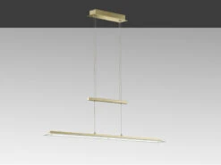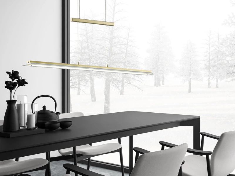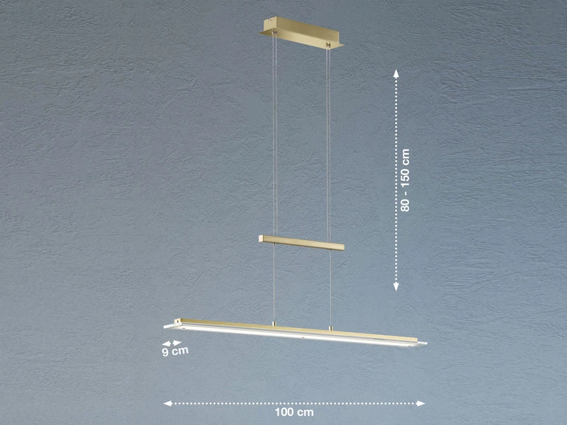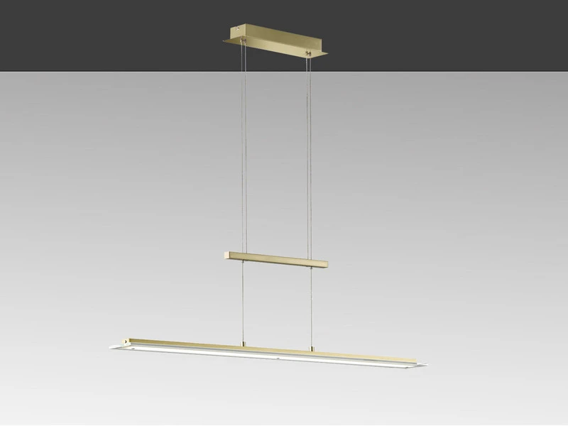 Klares Design wird hier mit neuester Technik kombiniert. Das Resultat ist eine geradlinige, 100 cm lange und 9 cm schmale Designerlampe, die zum einen durch den Materialmix von Messingfarben mattem und glänzendem Metall mit satiniertem und klarem Glas ihren modernen Charakter erhält und die zum anderen mit modernster LED Technologie ausgerüstet ist.