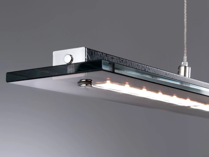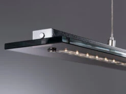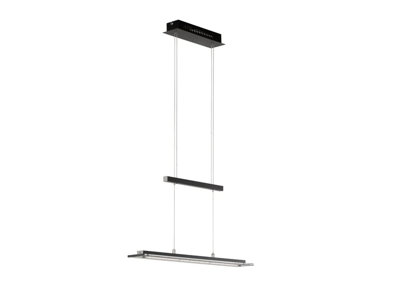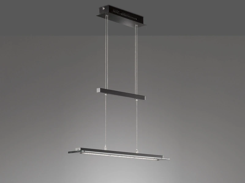 Klares Design wird hier mit neuester Technik kombiniert. Das Resultat ist eine geradlinige, 64 cm lange und 9 cm schmale Designerlampe, die zum einen durch den Materialmix von Schwarz mattem und Chrom glĂ€nzendem Metall mit rauchfarbenem Glas ihren edlen Charakter erhĂ€lt und die zum anderen mit modernster LED Technologie ausgerĂŒstet ist.