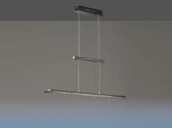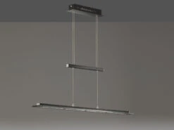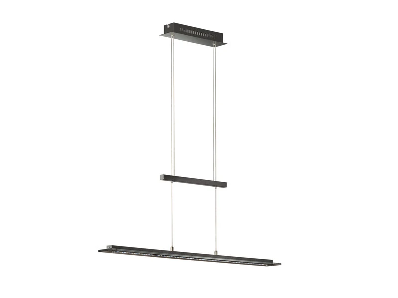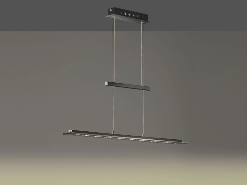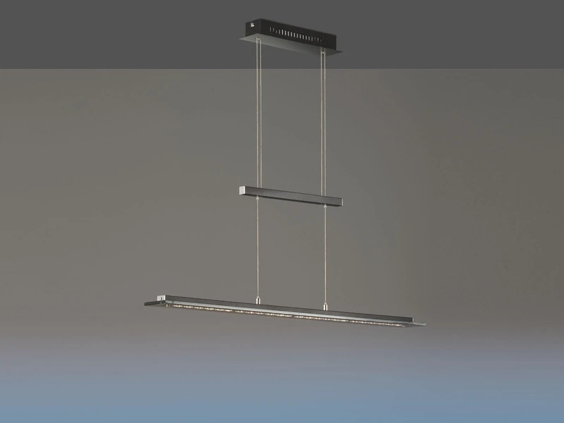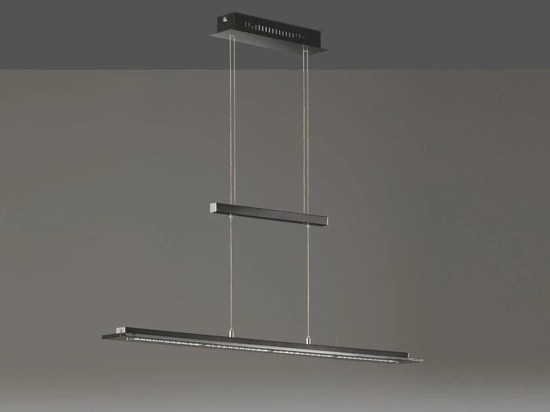 Klares Design wird hier mit neuester Technik kombiniert. Das Resultat ist eine geradlinige, 88 cm lange und 9 cm schmale Designerlampe, die zum einen durch den Materialmix von Schwarz mattem und Chrom glĂ€nzendem Metall mit rauchfarbenem Glas ihren edlen Charakter erhĂ€lt und die zum anderen mit modernster LED Technologie ausgerĂŒstet ist.
