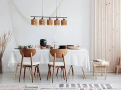 Ausgestattet mit fĂŒnf E14 Fassungen kann die Pendelleuchte mit passenden Leuchtmitteln bis jeweils 25 Watt bestĂŒckt werden. Bei Verwendung von dimmbaren Leuchtmitteln sowie zusĂ€tzlicher Installation eines Wanddimmers können Sie die natĂŒrliche LichtatmosphĂ€re noch einmal ganz nach persönlichem Wunsch unterstreichen.