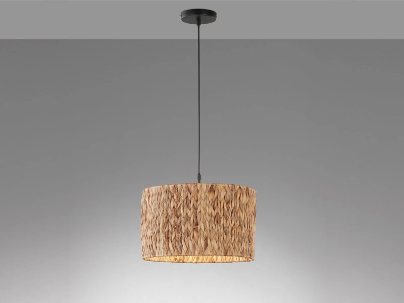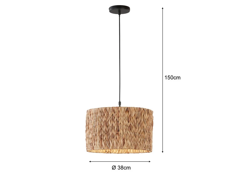 Die Pendelleuchte HYAZINTHE strahlt einen gemĂŒtlichen Hauch des angesagten Boho Styles aus. Mit ihrem 38cm groĂen Lampenschirm aus geflochtenem Seegras und der schwarzen, 150cm langen AufhĂ€ngung kommt die HĂ€ngelampe ĂŒber jedem Tisch perfekt zur Geltung. Sei es ĂŒber Ihrem Esszimmertisch, dem KĂŒchentisch oder auch im Wohnzimmer ĂŒber dem Couchtisch.