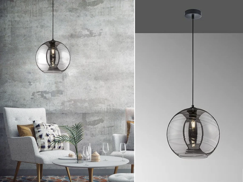 Die Kugelleuchte ist mit einer E27 Fassung ausgestattet und für ein Leuchtmittel bis max. 60 Watt geeignet. Da man durch den Rauchglas Lampenschirm einen direkten Einblick auf das Leuchtmittel hat, empfiehlt sich hier ein dekoratives Filament Leuchtmittel, welches das Gesamtbild der Leuchte vervollständigt und sie garantiert zum neuen Eyecatcher in Ihrem Zuhause macht.