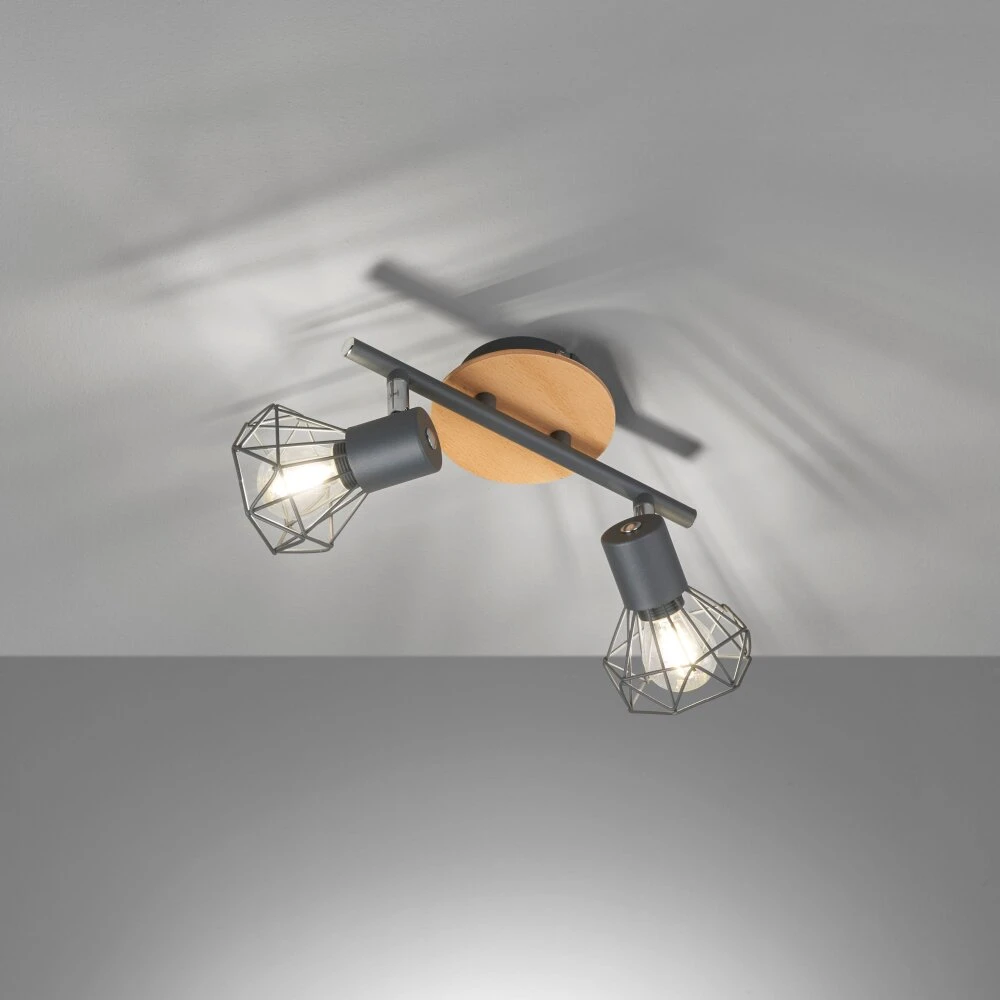 Fischer & Honsel Ran Deckenleuchte Grau, Holzoptik, 2-flammig
