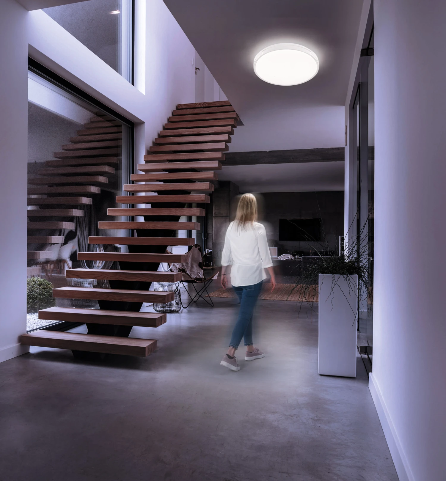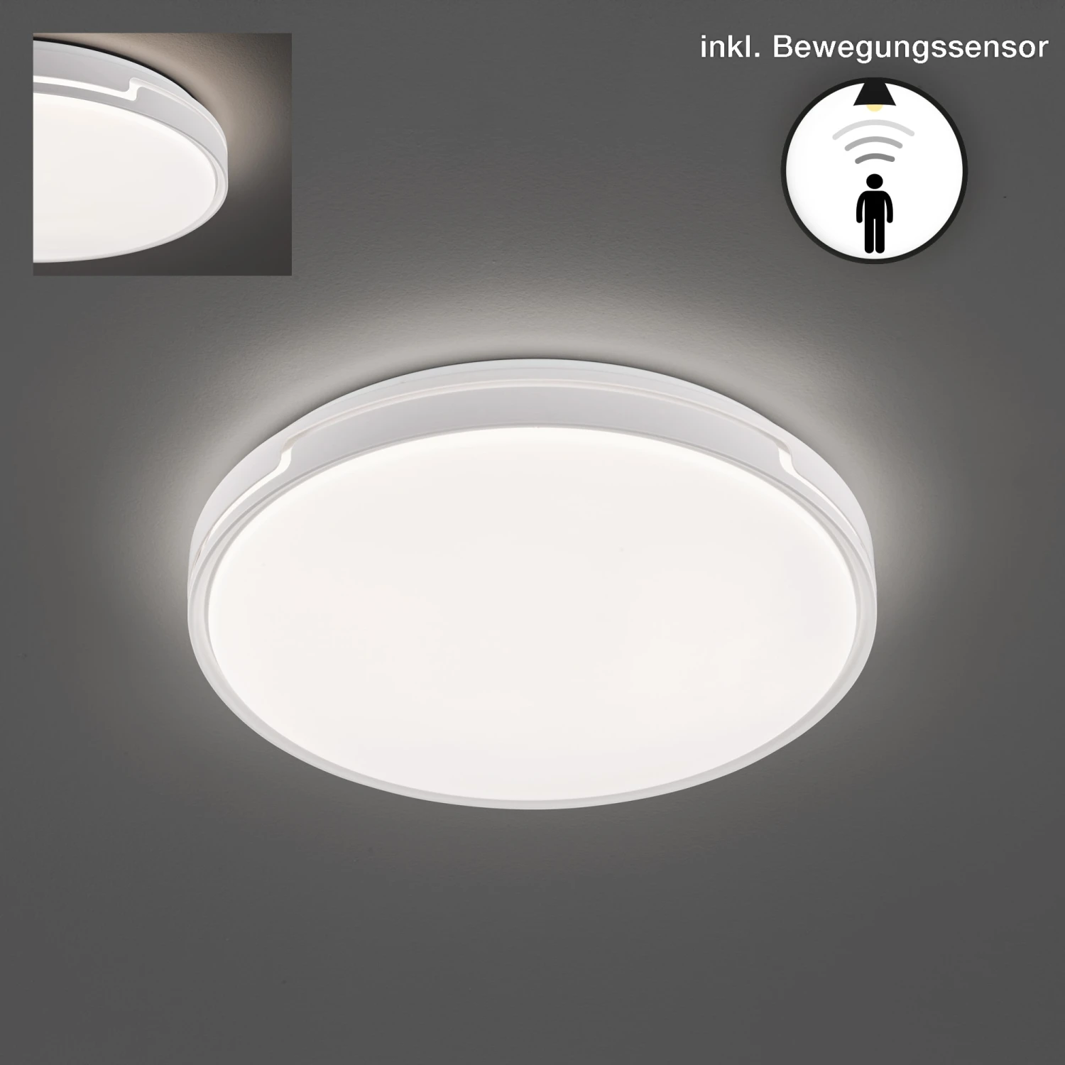 Klare Schlichtheit und souveränes Understatement zeichnet den Charakter dieser Leuchte aus. Mit einem Durchmesser von 49 cm lässt sie Räume größer wirken und ordnet sich unkompliziert jedem Einrichtungsstil unter. Die hochwertige weiße Oberfläche kombiniert mit dezetem Acrylglas macht sie zu einem echten Dauerbrenner. Der Body Sensor ist direkt in der Leuchte integriert, sodass kein separater Bewegungsmelder angebracht werden muss. Diverse Wahlmöglichkeiten bei den Funktionen Distanz, Uhrzeit, Dämmungsgrad sowie Einschaltdauer bietet ihnen hohe individulle Nutzungsvarianten je nach ihrer persönlichen Wohnsituation.