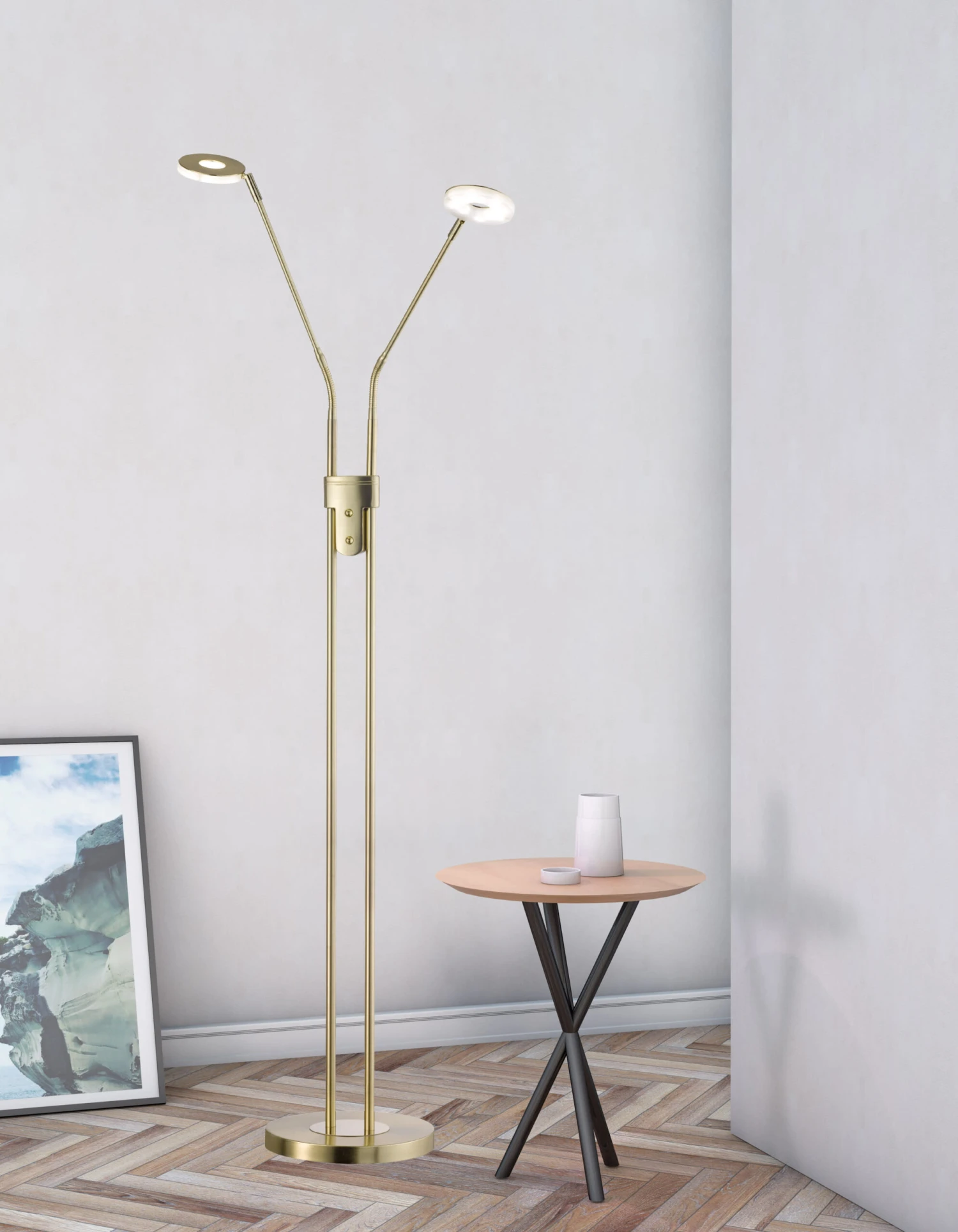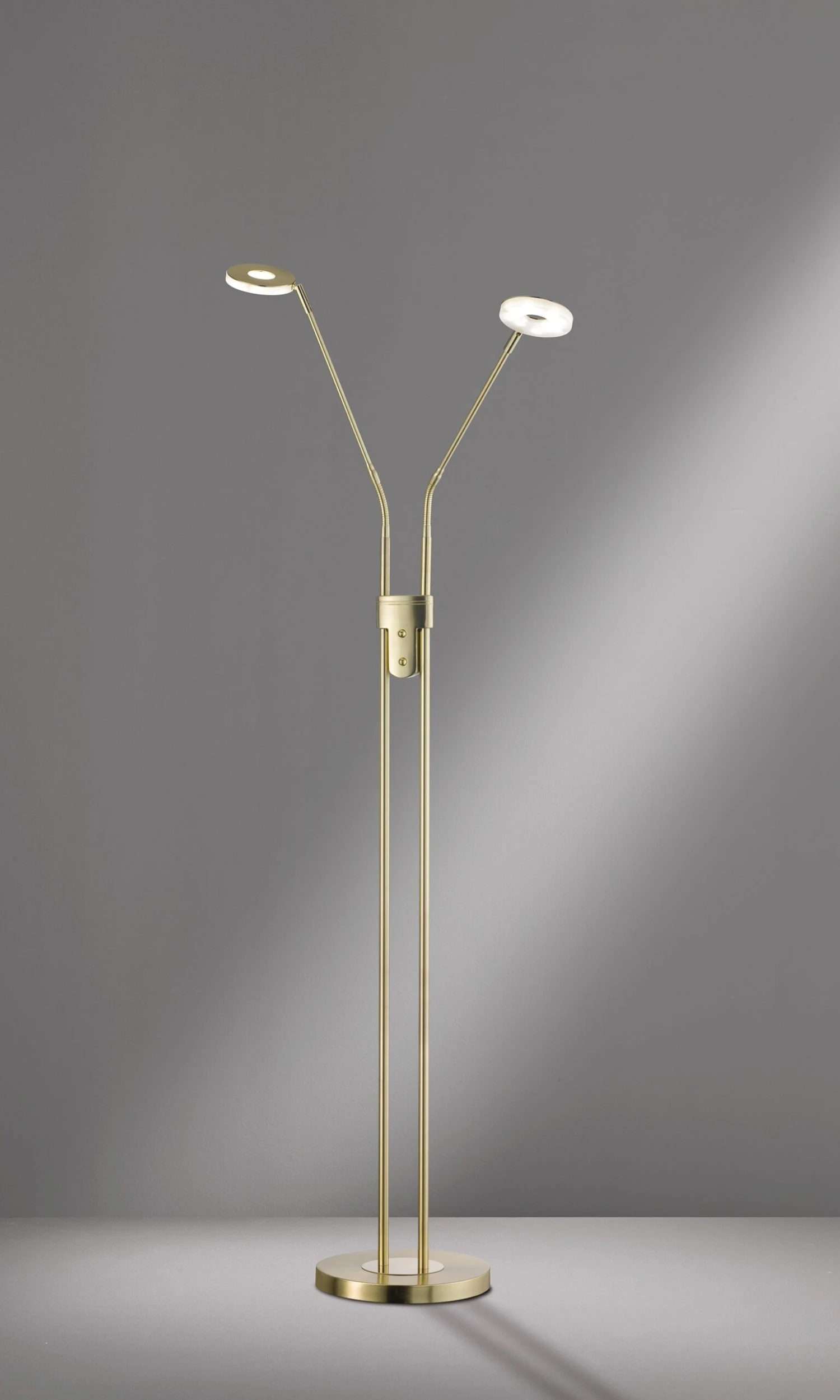 Die messingfarben matte Oberfläche mit einem Acrylglas satiniert wirkt modern. Mit einer Ausladung von 40 cm und einer Höhe von 150 cm ist dieser Artikel für Flure oder Wohn- und Essbereichen bestens geeignet. Schönes Licht ist garantiert. Durch einen Tastdimmer direkt an der Leuchte ist stufenloses Dimmen für die Gemütlichkeit gegeben.