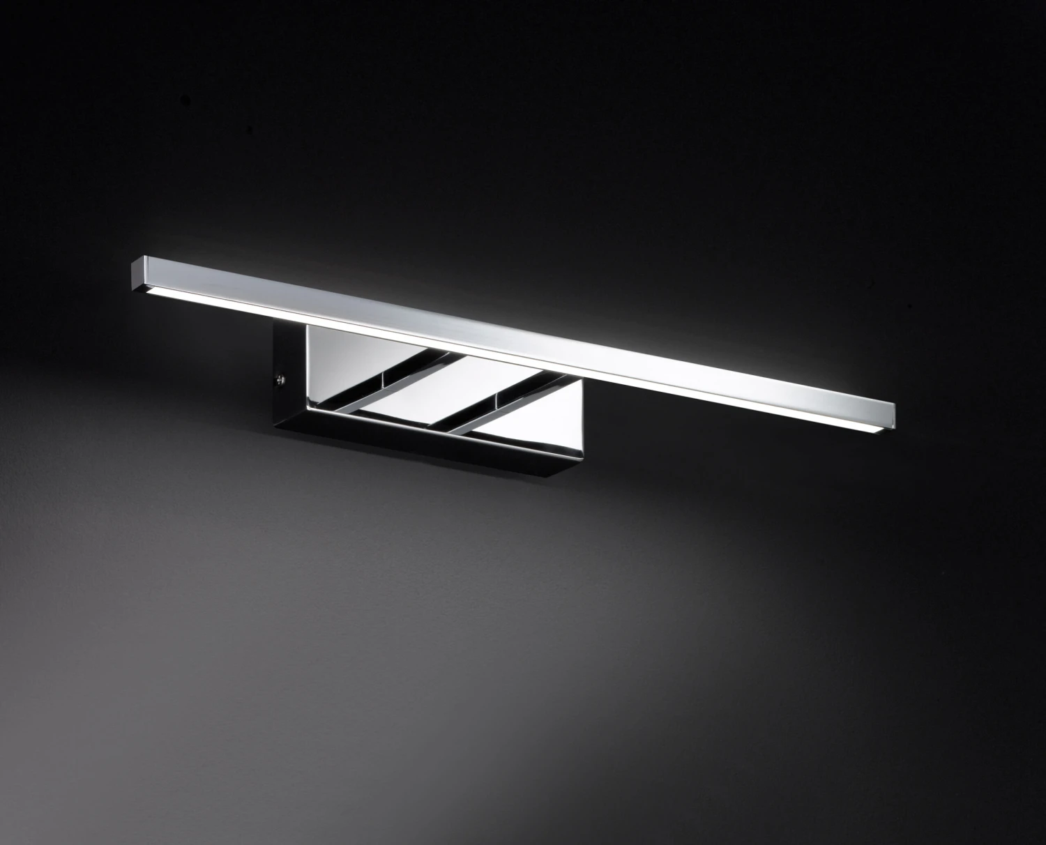 Die chromfarbene Oberfläche mit einem Acrylglas satiniert wirkt modern. Mit einer Ausladung von 13 cm und einer Länge von 45,5 cm ist dieser Artikel für Flure oder Wohn- und Essbereichen bestens geeignet. Schönes Licht ist garantiert.