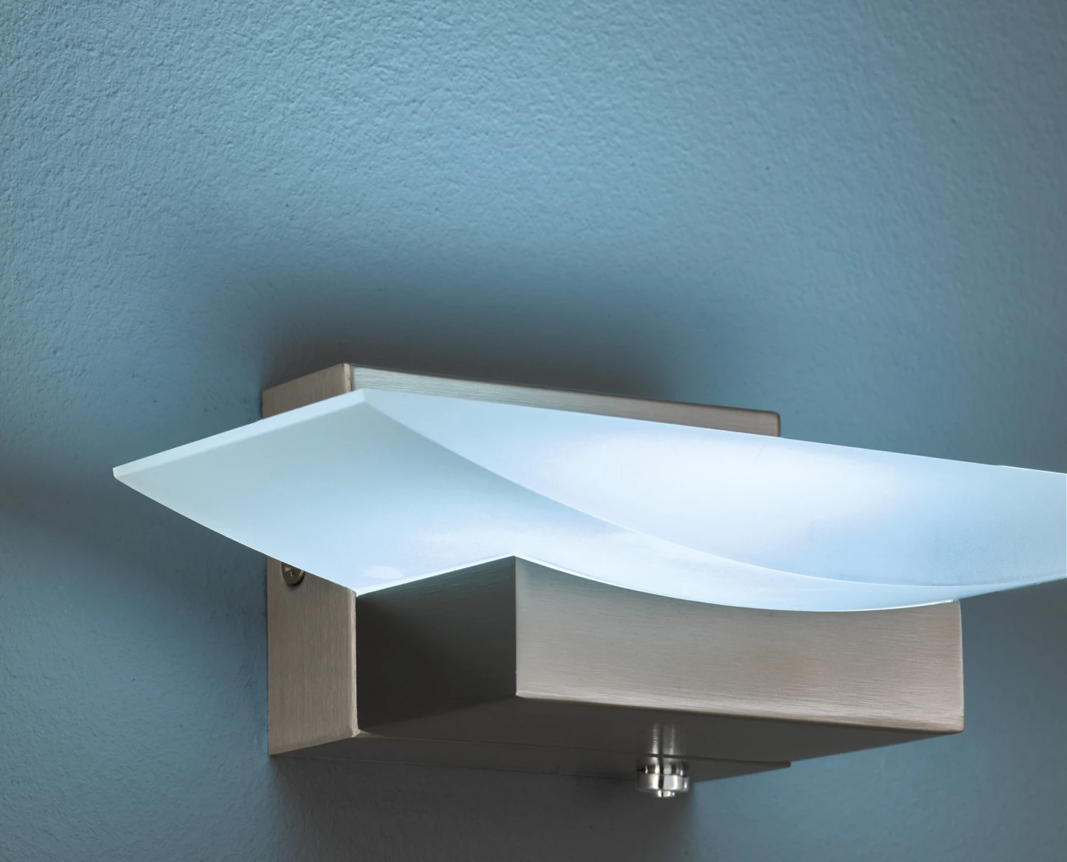 Die nickelfarben matte Oberfläche mit einem Acrylglas satiniert wirkt modern. Mit einer Ausladung von 11 cm und einer Breite von 20 cm ist dieser Artikel für Flure oder Wohn- und Essbereichen bestens geeignet. Schönes Licht ist garantiert. Durch einen Tastdimmer direkt an der Leuchte ist stufenloses Dimmen für die Gemütlichkeit gegeben.