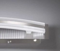 Die nickel-chromfarbene Oberfläche mit einem Acrylglas in weiß satiniert wirkt modern. Mit einer Ausladung von 9 cm und einer Länge von 48 cm ist dieser Artikel für Flure oder Wohn- und Essbereichen bestens geeignet. Schönes Licht ist garantiert. Durch einen Tastdimmer direkt an der Leuchte ist stufenloses Dimmen für die Gemütlichkeit gegeben.