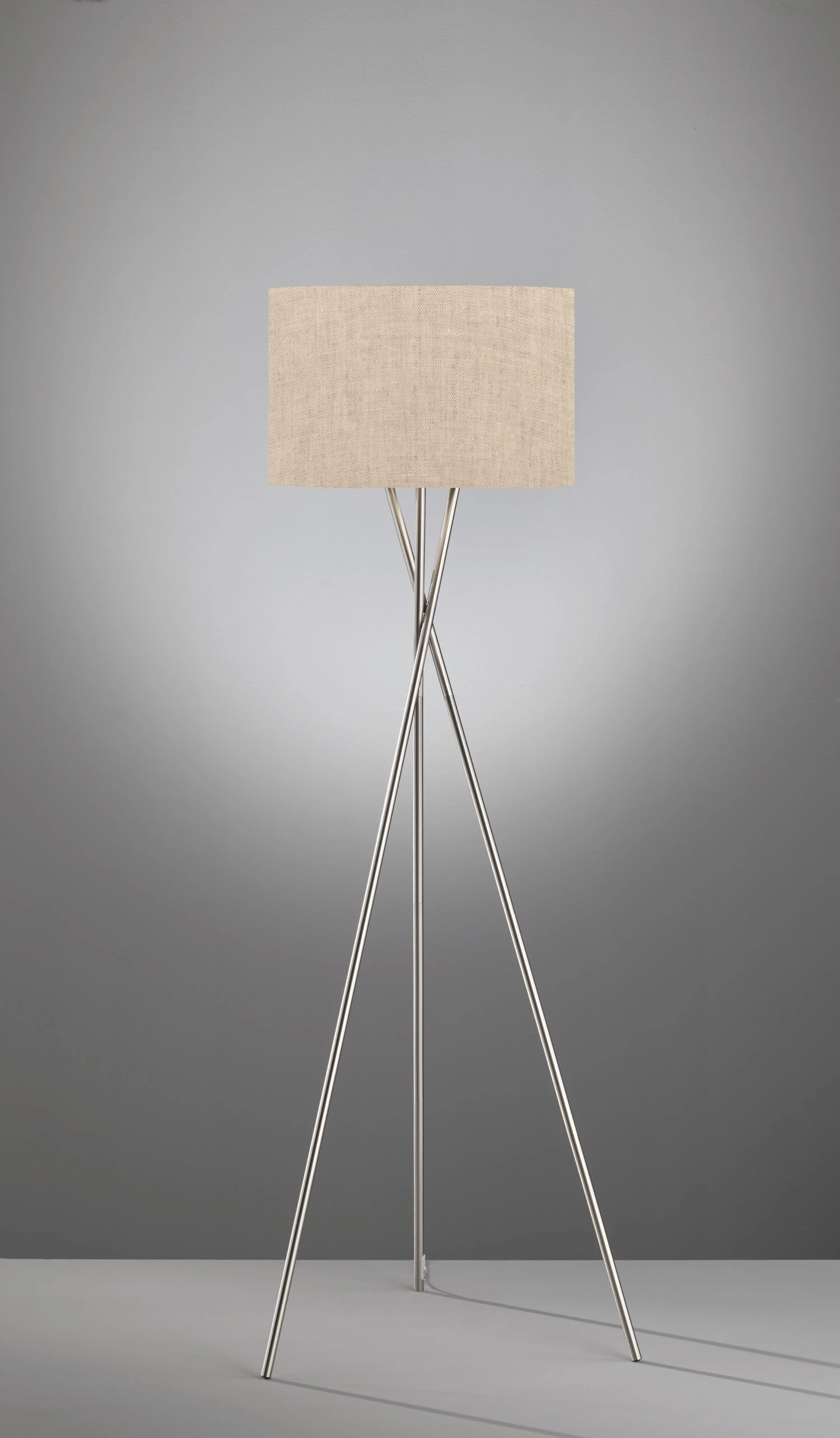Mit einer Höhe von 160 cm und einem Durchmesser 68 cm lässt sich diese Stehleuchte sehr individuell platzieren. Der sandfarbene Stoffschirm mit einem Durchmesser von 45 cm und einer Höhe von 29 cm ist wohnlich und modern. Bestückt wird dieser Artikel mit 1 x E27 max. 60. Das Leuchtmittel wird nicht mitgeliefert. Es können Leuchtmittel der Energieeffizienzklassen A bis G eingesetzt werden. Durch einen Schnurschalter ist ein einfaches Ein- und Ausschalten gewährleistet.